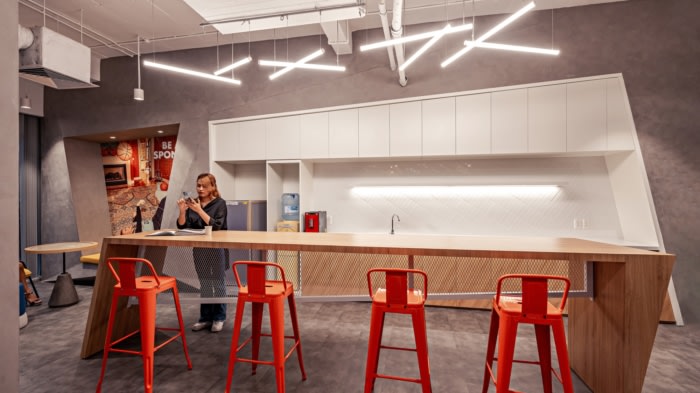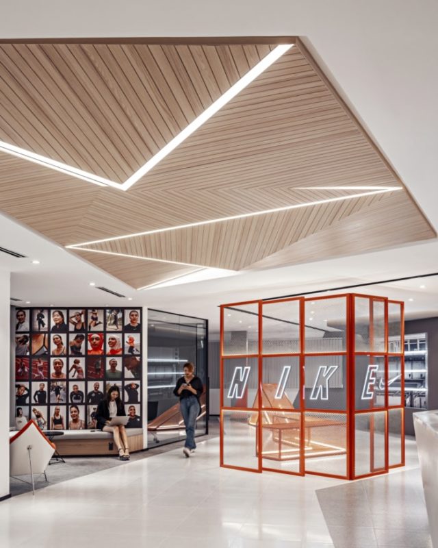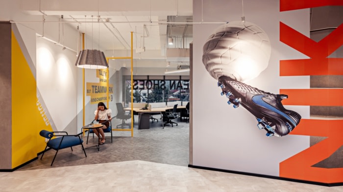 Space.s researched and designed a dynamic space with an impressive “deconstruction” architecture, inspired by “The Land of Energy” and the desire to express the brand identity of Nike clients. Space.s has brought a design solution with a youthful style by combining wood and stone materials, bright colors, and smart space division between every area such as: pantry, meeting room, open workspace, collaboration space.