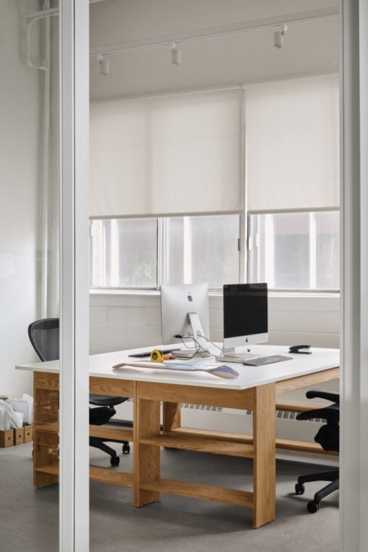 The company’s new collaborative space is located in the heart of a former industrial sector in Montreal’s Mile-End district. Breathtaking views of Mount Royal convinced the founders to move to the 6th floor of the Casgrain Avenue building. Airy and simple, the space comprises several open and closed areas, enabling collaborations. A large common area, which includes a vestibule, a lounge, and a kitchen, is featured at the suite’s entrance.