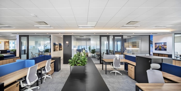 Enclosed rooms for the Directors and internal meeting rooms are planned in a modular foot print to provision for the flexibility in potential change, for the future. The rooms are boxed with full height glazing panels to create transparency and encourage the openness of interaction.The open plan is nested in the heart of the workspace, allowing maximum natural lighting to penetrate through for an airy and conducive working environment.
