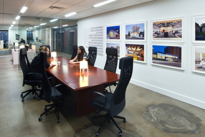 The firm has gained a new level of connection with their work by being literally enveloped by the city. In fact, many of the firm’s projects are visible from the studio. All existing ceilings and floor finishes were removed. Most of the final design incorporates exposed concrete floors and ceilings to increase the perception of height and create a raw aesthetic feel to the space, aligning with the firm’s penchant for simple, clear and minimal design solutions.