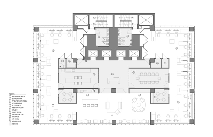 The Boardroom and Fabrication Lab + Materials Library are clearly visible upon arrival and provide critical infrastructure for experimentation and innovation, housing a 3D printer, laser cutter, cutters, full Virtual Reality capabilities, and materials samples. The entire studio is equipped with wi-fi helping to enable this agile workspace. A shower and nap room round out the facilities, provided to support a variety of different work and life styles. The space is designed to support a positive and collaborative work culture based on a clear set of shared values.