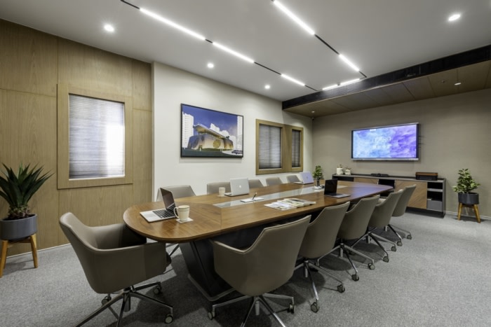 The entire layout has been kept clean, simple with straight lines. Glass partitions have been used between different areas to keep things transparent and free flowing between the directors and their employees. We wanted to create an office space which is open, transparent, modern and dynamic in design where one can engage and ideate with their colleagues.