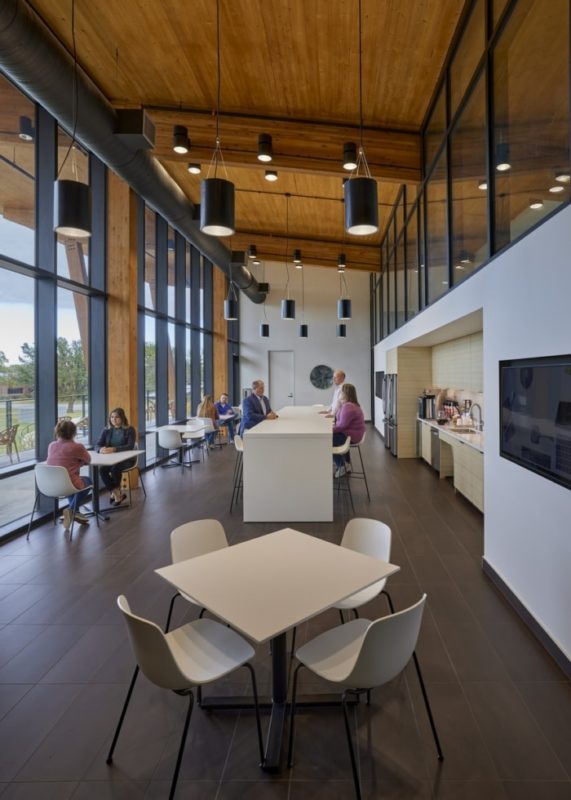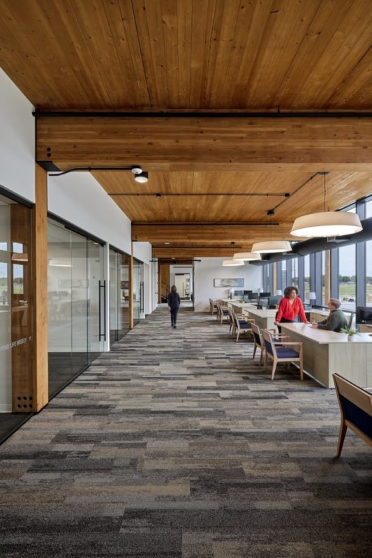The design intent of First United Bank’s regional headquarters in Sherman, Texas is to serve the wider community and attract and retain top talent. The design creates an environment representative of the local area, while placing a heavy emphasis on sustainable materials and practices using mass timber construction.
