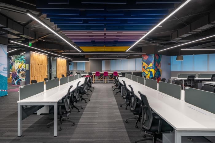 The floor plan was spread with linear workstations, support spaces, uniquely designed meeting rooms, breakout, and recreation spaces. The Flutter office was designed such that functionality, accessibility, aesthetics, and comfort worked together in harmony. The expandable set of training rooms as well as the cafeteria could both be utilised to hold medium to large-sized gatherings such as all-hands or townhall meetings.