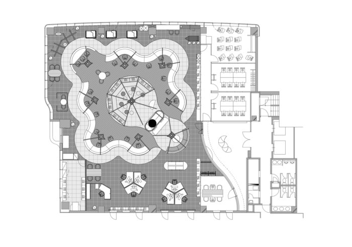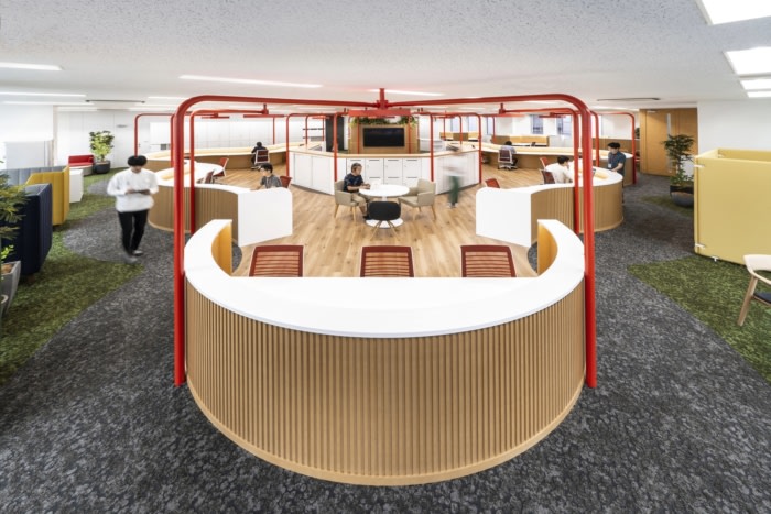 An initial C -shaped that is common to keywords such as “Creative and Collaboration” that are necessary for a new office environment, C shape imagine Landolt-C, we are make a sequence by making C continuous. Inspired by this, we are making zoning, structure and Identity etc.