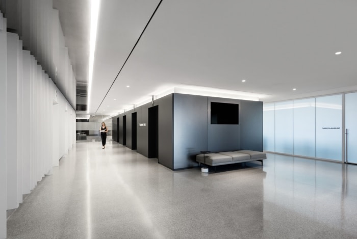 The practice wings themselves are also designed as living environments that foster collaboration. Assistants are grouped together in central workspaces with access to natural light and 270-degree views via glass offices at the perimeter, while corner offices formerly reserved for partners are now given back to the employees, transformed into collaborative project rooms for all to use.