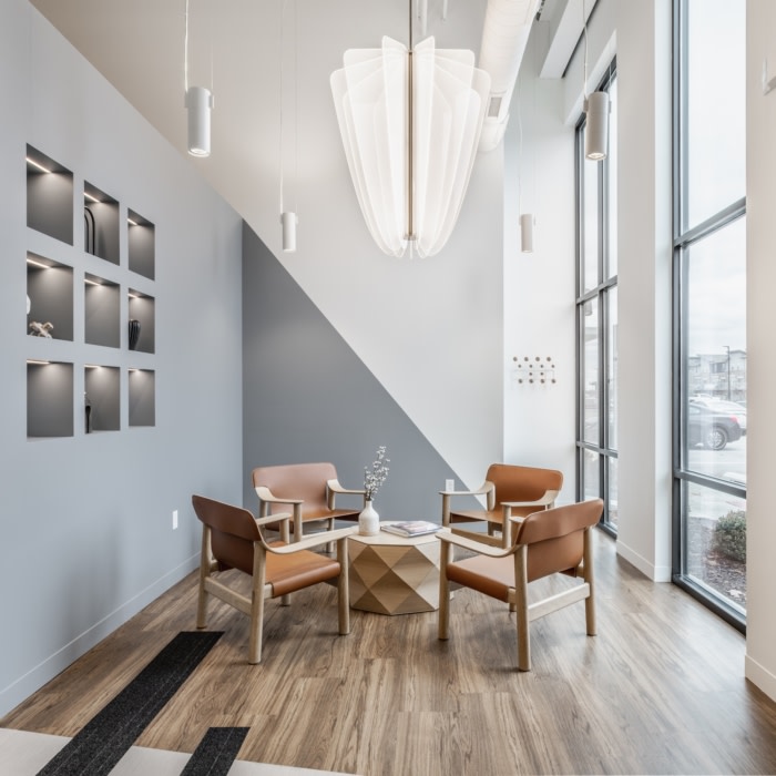 Beginning conversations with Halter Ferguson in 2020, Kaitlyn Barrett, Studio Director and Senior Interior Designer led the design efforts with a full team of support behind her from our studio. After much research and in reviewing a plethora of options, it was clear that the new location would be in Carmel located at 13080 Grand Blvd Ste 130.