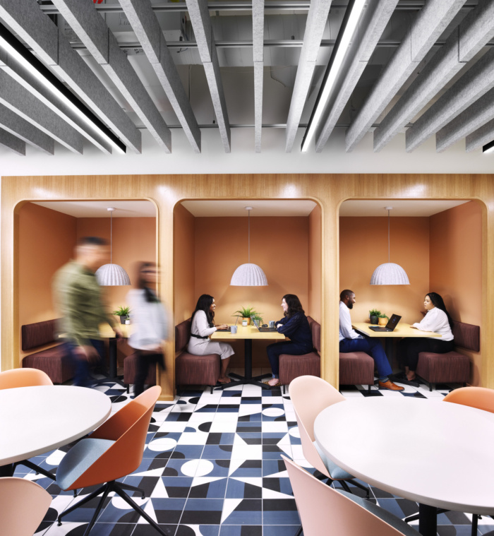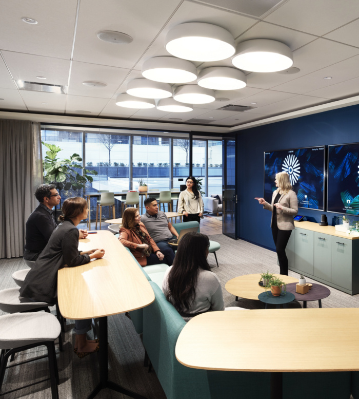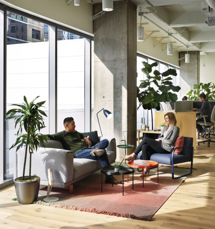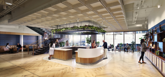 The finish palette features fresh soothing colors, warm natural tones, textural tailored fabrics, local art, and organic graphic wall-coverings. Plants thoughtfully sprinkled throughout all of the common areas are intended to keep the space feeling calm, fresh, and boost productivity. Designed to appeal to different markets around the world, Hana balances timeless, sophisticated materials with thoughtful details designed to surprise and delight it’s users.
