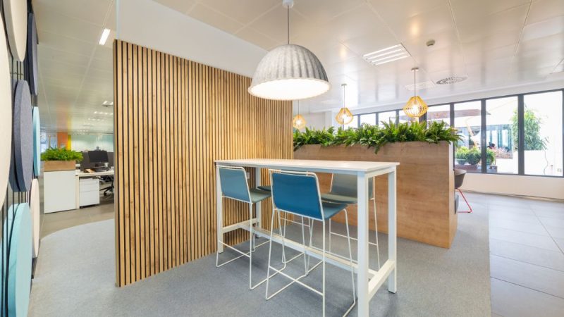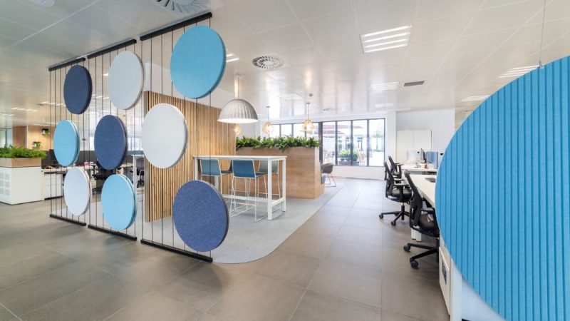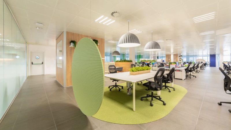 The sound-absorbing elements contribute warmth, colour and comfort and create a shared language that helps to generate a more intimate arrangement and layout across the entire floor.The introduction of the biophilic design, which boosts people’s physical and psychological well-being by allowing them to connect with nature, has generated a whole field of possibilities in the design of the work spaces. Recent studies confirm that not only do we like the natural environment, but we also actually need it, or at least a representation of it, if we are to work to the best of our abilities.”