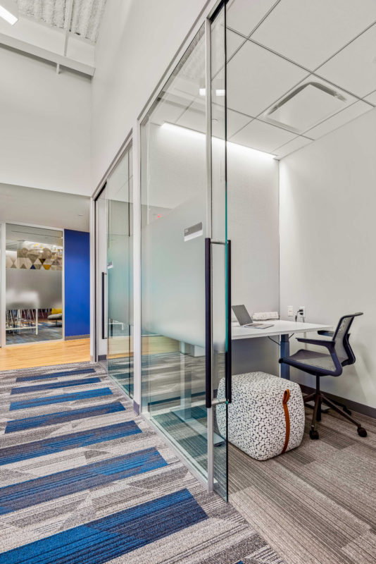 While the state-of-the-art facility enhances staff productivity and efficiency, it also reflects GSK’s commitment to employee wellness. The office includes numerous thoughtfully-designed and accessible areas for team members to step away and recharge during the day. FCA also incorporated abundant access to natural light throughout the space and implemented ergonomic product solutions to support employee comfort. Cool gray tones and bright pops of color create a calm yet energizing atmosphere for occupants, and ensure a welcoming experience for visitors.”