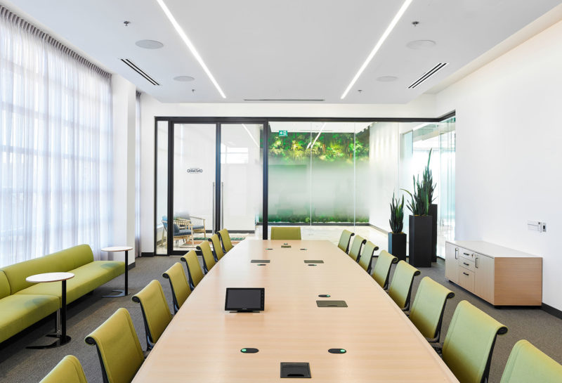The public facing facilities are organized around the town’s “Piazza”, and flanked by community spaces such a training rooms, café, reception, boardroom and visitor meeting rooms, etc.”