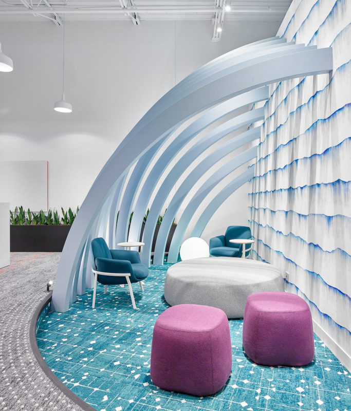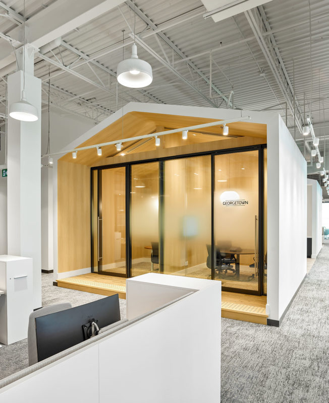 By clustering hard-walled spaces at the center we divided the space into four neighbourhood quadrants. Each neighbourhood has a central common space break-out area with a unique visual identity. And each of these “squares” is further differentiated by having an individual ambiance based on one of the four seasons.