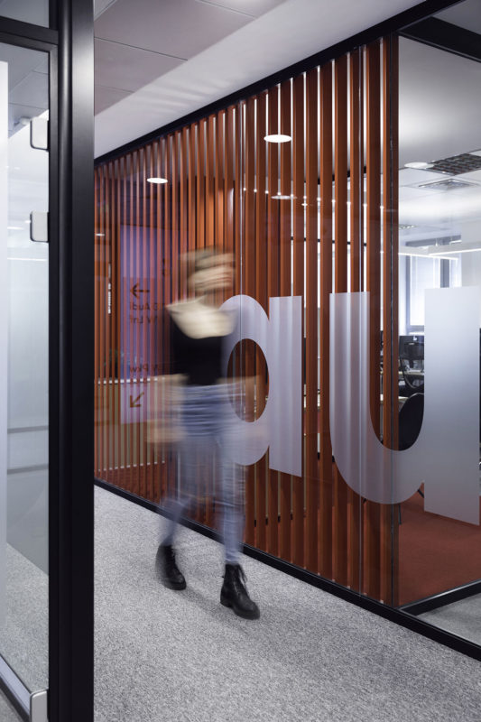 We carefully carried the philosophy of the brand into the interior design through architectural elements: use of glass partitions to suggest transparency, eco-friendly materials, custom-made furniture and lighting elements are used to create a comfortable environment adapted to the company’s needs.Vibrant color interventions in some interior elements are used to represent each brand department, adding character and distinction to each. Custom-made parametric slats in departments are used to allow light and views in for all the staff but the right quantity of privacy from the hallway.