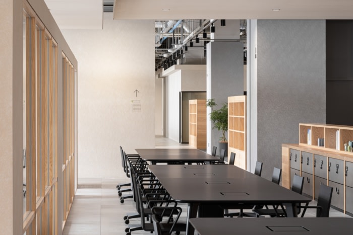 Flooat carefully selected materials and furnishings, and opted for uneven colour intensities. This allows the interior to change tone with the movement of light conditions throughout the day. While being in an office, employees sense the passage of time via real-time light effects, enhancing their sense of wellbeing.