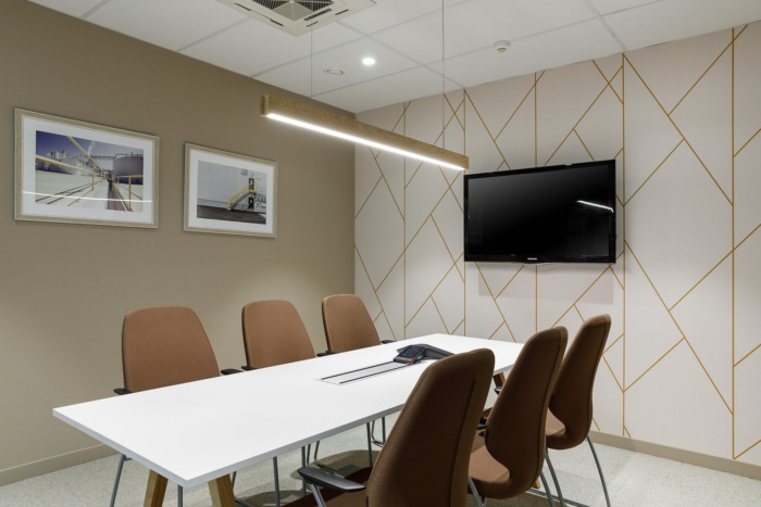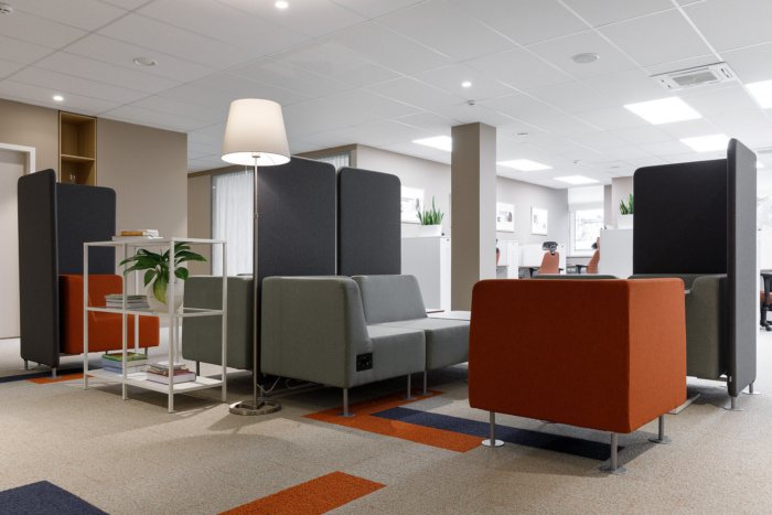 One of the company’s top priorities is the comfort of employees. A separate workstation with an emphasis on acoustics – a small “office” has been created for each employee due to mobile solutions – a high pull out cabinet and acoustic desktop and floor partitions.