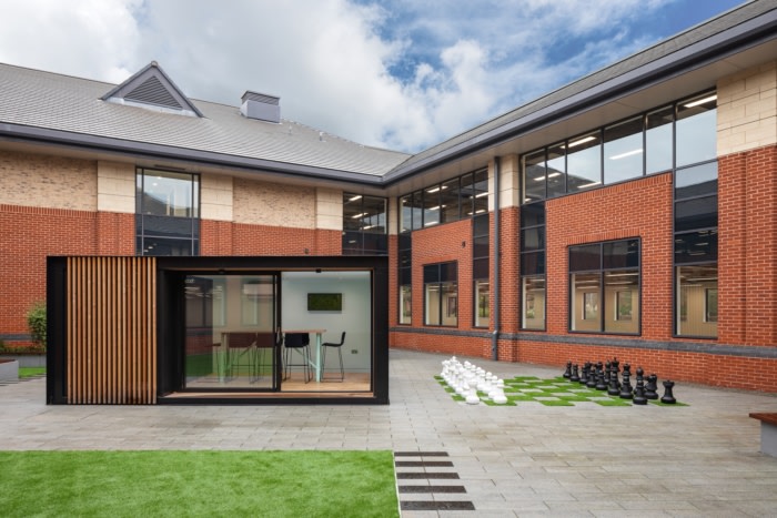 A focus on employee wellbeing has become key for many landlords looking to attract tenants in a competitive market, and these offices deliver a wellbeing-focused experience inside and out. New shower and bike storage facilities were installed to accommodate cyclists and workers have exclusive access to two courtyards in the middle of the building. Kennedy Wilson were keen to make the most out of these outdoor spaces, so after landscaping these areas, Oktra crane lifted a pod into one courtyard to serve as a juice bar, and the second courtyard was left for the client to customise. Additionally, there is an outdoor auditorium with a projector which can be used for events and a giant chess set.
