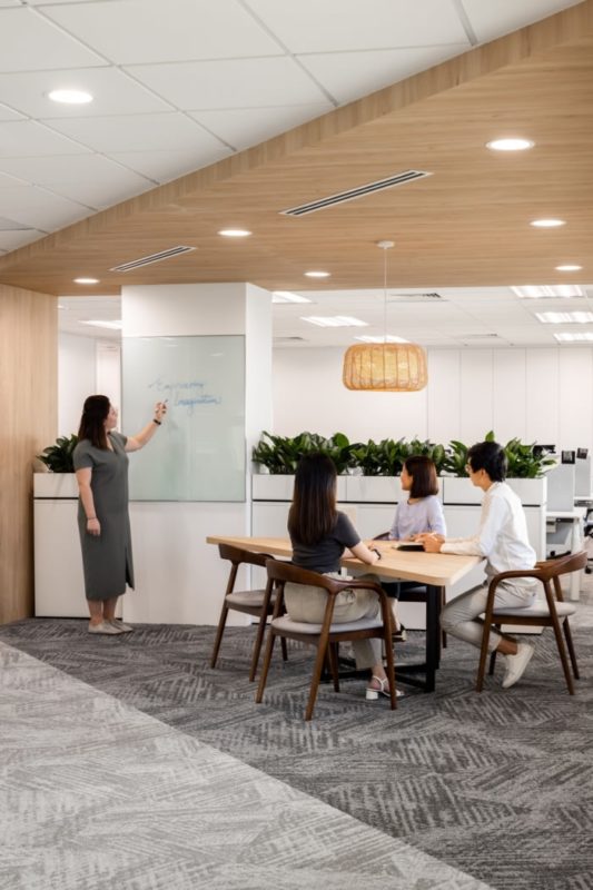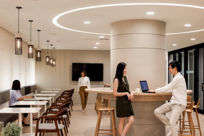 The design approach aims to achieve twin objectives: to encourage casual interaction and creative collaboration among employees, and to respond efficiently to the everchanging needs of the workforce in a pandemic era.