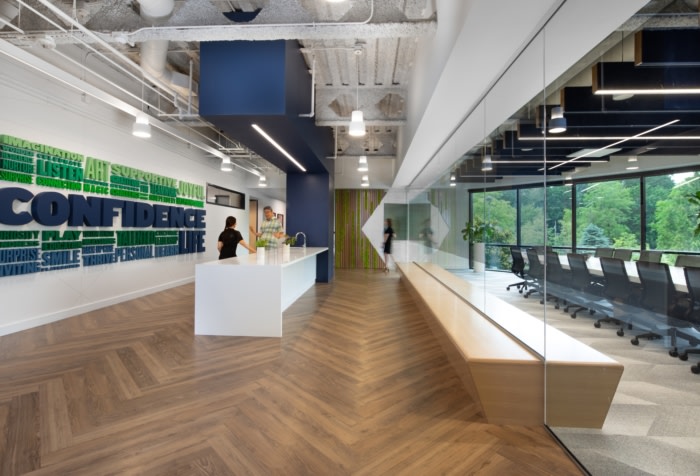 The design reflects KinderCare’s company ethos of transparency and people-centricity by incorporating multiple independent spaces designed for self-care, with expansive glass windows and doors representing transparency. The incorporation of a word wall designed by KinderCare’s Marketing Team expresses the company’s values and ongoing impact on employees, families, and communities. Additionally, there is a wellness room as well as a mother’s room to further promote KinderCare’s mission to take care of their employee’s.
