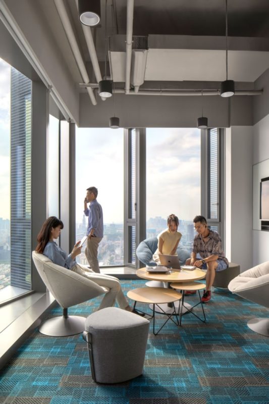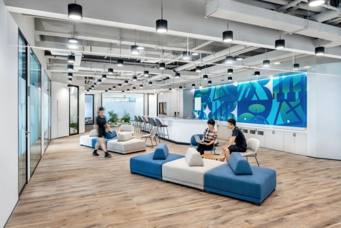 In contrast to the enclosed spaces of the old office, the new office space is a flexible and open-plan area to support innovation. This celebrates key elements of LMEG’s identity – entertainment, culture and network.The “Community” culture held by LMEG is well-supported by different zones. There are the Independent Work Zones and the Open and Semi-closed Co-working Zones. Various-sized conference rooms and training classrooms are also dynamic spaces for exchange. Each floor has an Open zone for brainstorming sessions and relaxing chats.