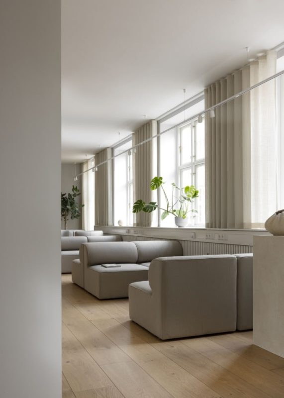 The new Liewood HQ, located in a grand building on Blegdamsvej in Copenhagen, invites you into a warm universe of light tones and textured natural materials. With its original sloping ceilings and deep window niches, the space reflects a time when elegance and good craftsmanship defined the identity of architecture. By adding a monochrome, yet rich colour and material palette, the building’s five floors form the framework for an inspiring work environment filled with life, changeability, and community.