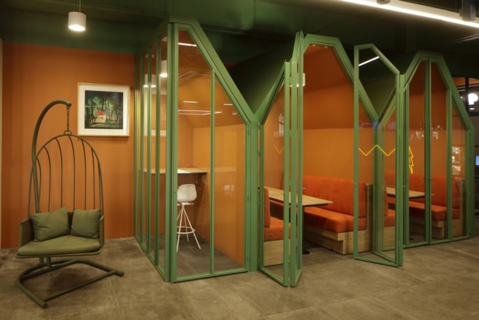 In the Hub’s divisions of the spaces, was decided to make elements of blacksmithing and glass in order unify the visual between the companies, and that same material language was sought for the capsules or work booths. Generating 3 volumes, one smaller for individual work or private personal calls. These first two areas help vestibulate the work area, where without identifying with hierarchy it is the same area that shares lighting, vegetation and air.