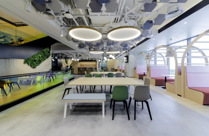 The suppression of assigned desking and cellular offices, supported by cutting-edge technology, allowed the project team to increase to simultaneously reduce the workstations density and raise the headcount capacity.