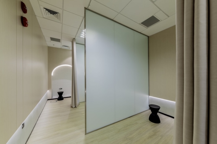 This increased efficiency enabled the re-assignment of space to Wellness & Collaborative functions, resulting in a truly agile environment that quintuples social spaces, introduces informal setups and provides facilities centered on employee’s well-being such as Nursing and Spiritual areas. With an emphasis on collaboration and interaction between colleagues, the vertical mobility has been improved by the creation of a connecting staircase across the 3 levels.