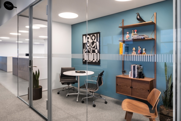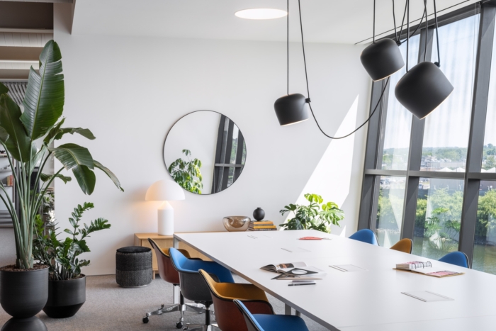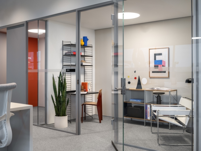 The notion of well-being at work was another key consideration in both the design and function of the space. Concepts such as air quality and access to natural light along with easily accessible amenities were prioritized in the design of the workspace. In support of human health and well-being, and ensuring equal access for all occupants of the space, all rooms have access to natural light and beautiful views. As the first furniture manufacturer to enroll in the WELL Portfolio Program, MillerKnoll has continued their commitment to third party verified certification and has achieved WELL Platinum Certification of the 20,000 square-foot office space.
