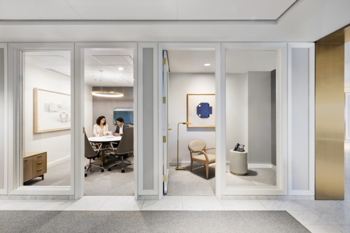 In addition, Mintz opted to create fully built-out mock-ups, so that partners, associates, and other staff members could work with designers to establish a set of options for offices that maintain a feel consistent with the rest of the workplace while also providing individual choice for office layout, furniture, and finishes. The mock-ups enabled the client to have confidence in its own decision-making, build consensus within the organization, and avoid unnecessary costs due to unforeseen problems.Design Solutions