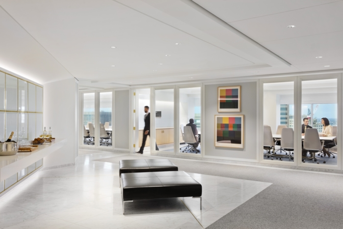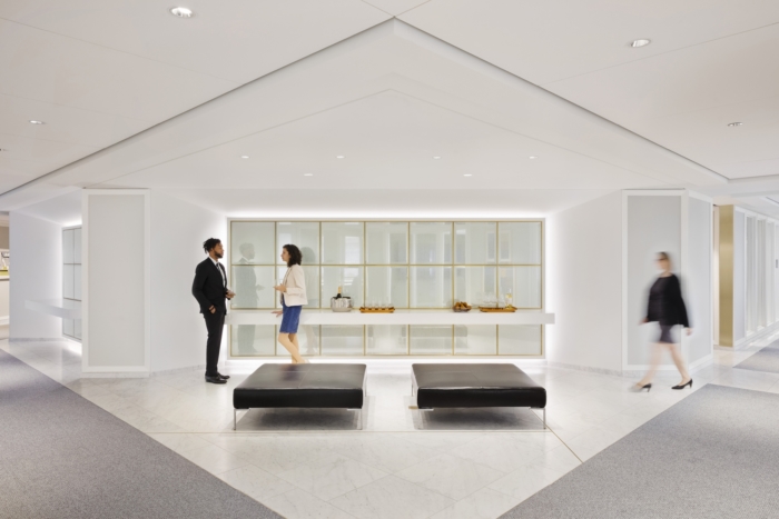 The concept for the new office draws upon Elkus Manfredi’s signature cross-industry design approach, combining techniques from diverse project types such as hospitality, residential, and high-tech design with extensive experience in designing for large law practices. The new office provides a flexible, collaborative, and welcoming environment for staff, clients, and visitors, with the highest standard of materials and finishes and sophisticated ergonomics utilized throughout. Advanced systems were designed for important environmental functions such as lighting, acoustics, and air quality to maximize comfort. A sense of ease and tranquility – enhanced with warm, low-contrast color schemes and access to daylight at every seat – permeates the entire workplace.