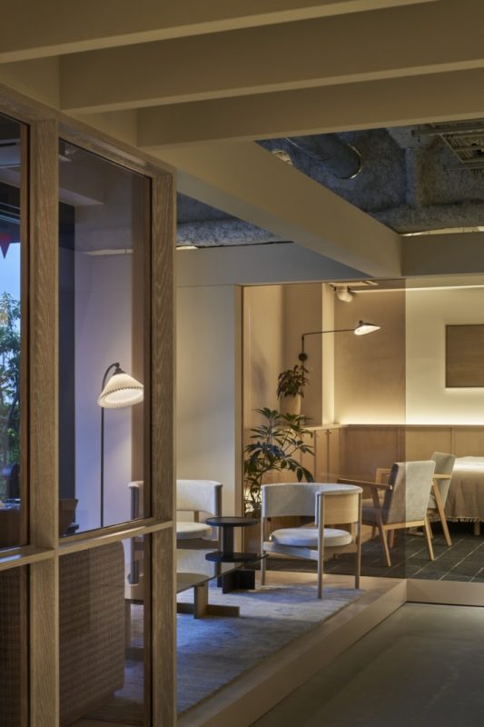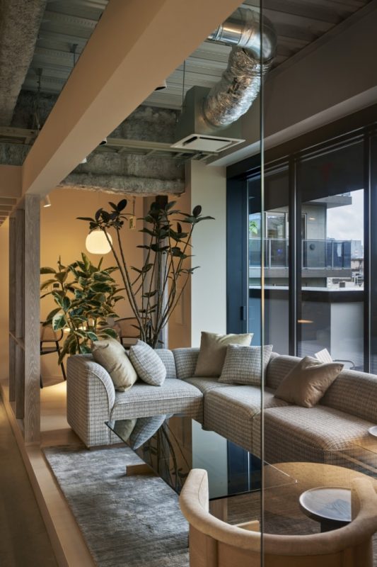 The functions of the space are arranged as rooms in the living space, and each of them is planned to exist as a rich scene where one can experience the company’s world view.