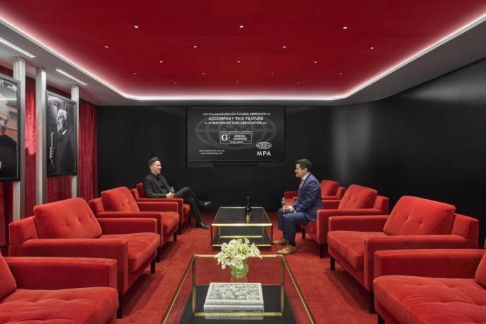 A floor above, the Jack Valenti Screening Room honors his 38-year MPA presidency with a nod to the theater he created by saturating the room in Hollywood red. It’s an immersive and personal experience that enables MPA to host VIP guests before a show, and doubles as a green room and live broadcast room with BSP integration.