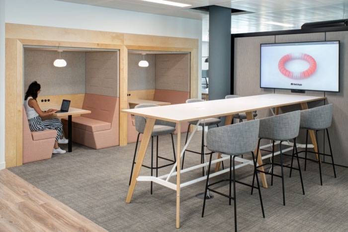 DENTON’s design philosophy revolved around creating a workplace that fostered collaboration, innovation, and employee well-being. By blending aesthetic appeal, ergonomic considerations, and the latest workplace trends, they ensured a seamless integration of form and function.The new NetApp workspace boasts open and dynamic areas, encouraging cross-functional collaboration and idea-sharing. Thoughtfully designed meeting rooms equipped with cutting-edge technology empower teams to conduct productive discussions and brainstorming sessions. Additionally, strategically placed breakout zones provide opportunities for spontaneous interactions, stimulating creativity and fostering a vibrant work culture.