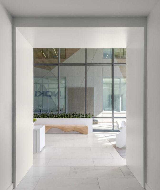 Like many corporations, Nokia offers flexibility in workplace locations. With two large corporate buildings, their professionals worked where they needed to, including home. While this certainly offered flexibility, building a collegial space that creates interaction points between individuals to speed problem-solving and spark creative ideas was critical to the company’s focus on innovation, teamwork, and attracting new talent. These criteria were something Nokia felt was essential in light of the multiple corporate cultures coming together. The issue of integration, especially in the technological and creative industries, has become a staple in today’s business climate—how to unify corporate cultures in a time when mergers and acquisitions are the norm. In 2015, Nokia acquired Alcatel-Lucent, a global telecommunications equipment company.