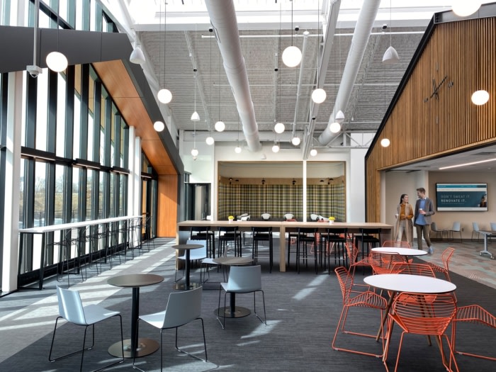 - A myriad of open and closed door workstyle choices that include huddle rooms, flex training space, high-tech conference rooms, work cafes, and chance interaction niches to name a few