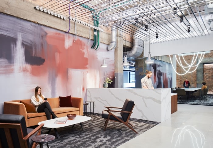 Conveniently located next to the building’s gym, lounge and bar areas, open workspace seating, and other amenities, the suite was quickly leased by Codal, a UX design and development company.