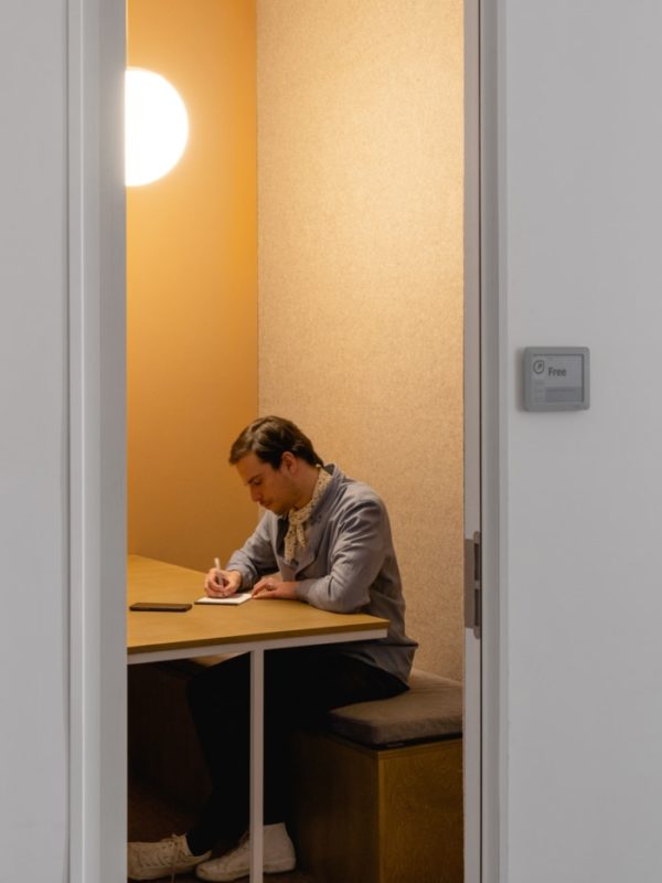 At the request of our customers, we have integrated a Room phone booth, a New York product, which promotes privacy and reduces noise pollution during video conferences, meetings or calls.