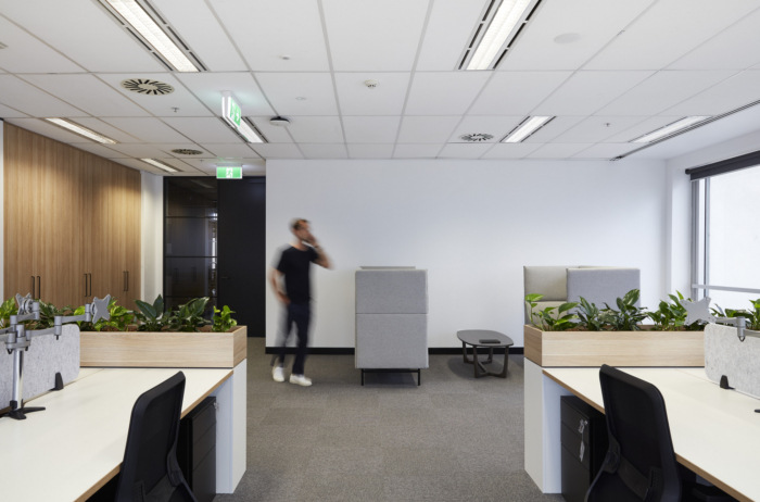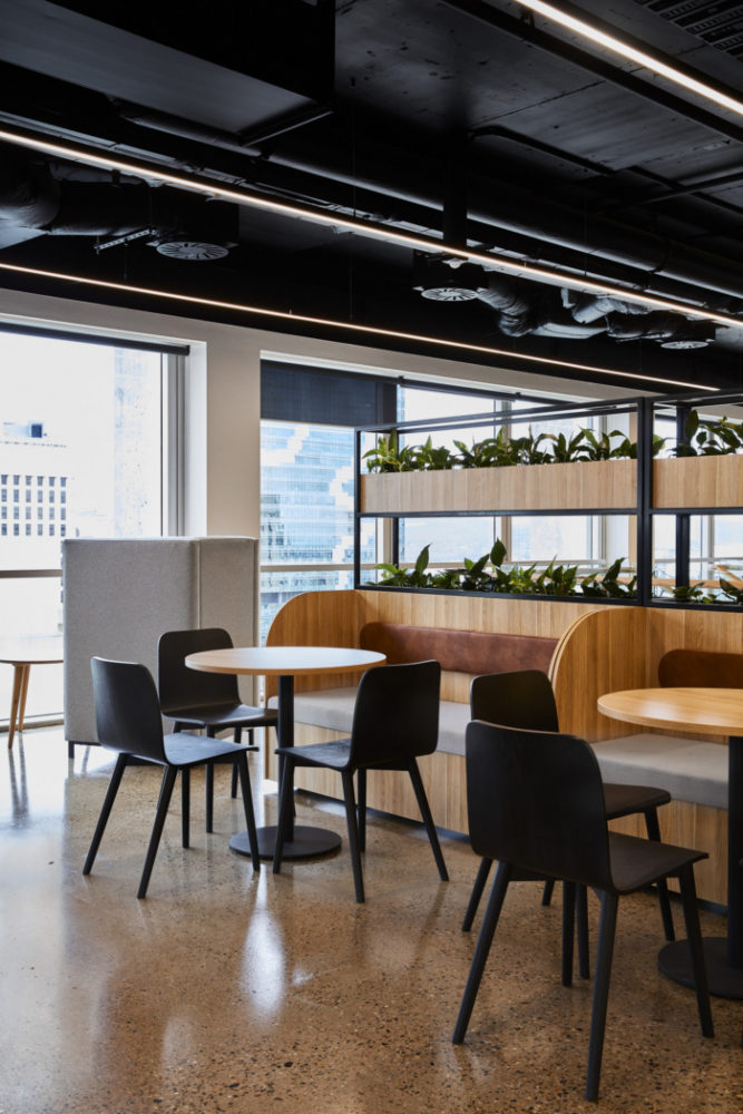 Interweaving openness, transparency and zones to physically bring Over the Wire together as one team was the focus throughout the design process. With an abundance of natural light and sweeping views, the overall palette is neutral and corporate with the addition of feature colours in line with the Over the Wire brand.