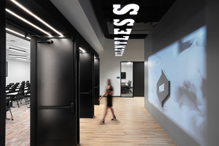 One of Power’s main goals for their new offices is to attract top talent and motivate current employees to be proud of the work they do and the company they are a part of. Employees spend the majority of their days out in the field, so the office was made to support the need for large company meeting spaces, training rooms, and team building activities. CRTKL helped achieve these goals by providing a highly branded and engaging space with many gathering areas for employees and an office that evokes an energetic and collaborative environment.