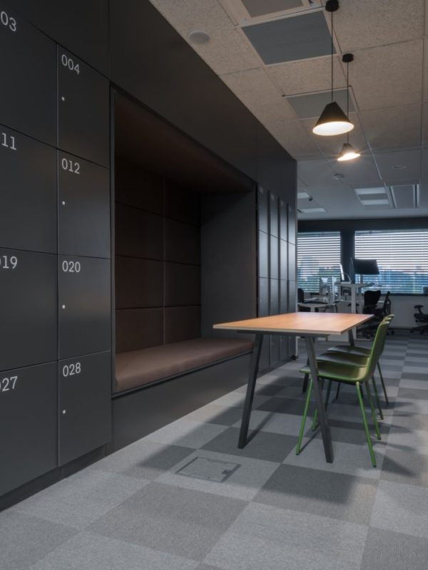 To design the space in order to convey a sense of belonging and identification the place was equipped with a range of atypical features to provide comfort and diversity in the workflow. The back of the main presentation stage serves as a napping room, a boulder wall is installed in the gym and yoga room, the creative room comes with transportable whitewalls that can be taken to the personal workplaces after team meetings; and an innovative scrum point was designed to rethink the way we are having meetings within the open space. To shorten the way to recreational zones and have equal comfort for all employees a smaller kitchen with relax zone is set up in between the working space.