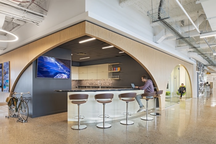 Focusing on Sachse’s core values, the condensed floor plate is designed to foster communication. The workplace includes a mix of open workstations, collaboration spaces, and meeting rooms, with a lounge, café, and gaming area. Garage-style doors provide flexibility to accommodate meetings large and small. Big, bold elements including statement furniture pieces and lighting help complement a sophisticated new Detroit headquarters.