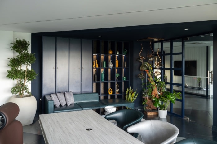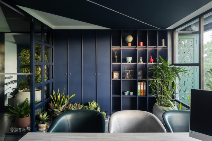 | April 21, 2023theKcompany designed the Samara Consultants offices with moody colors and greenery to brighten the space in Kochi, India.