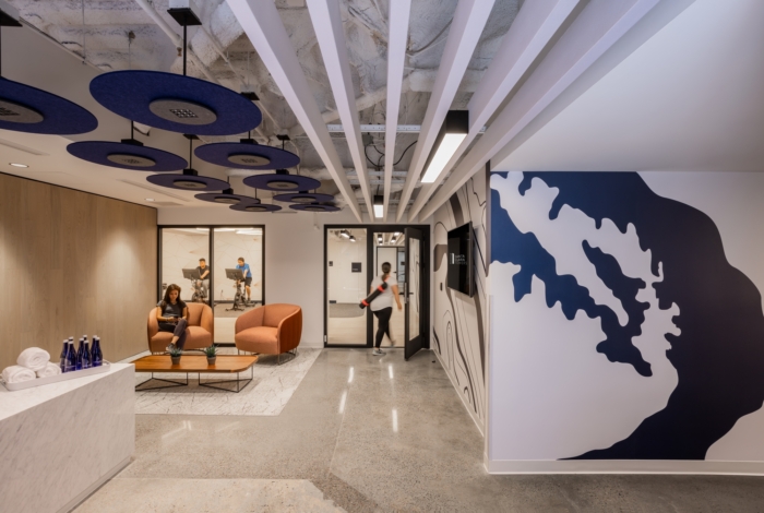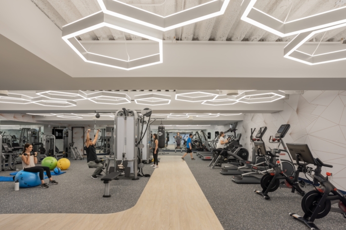 At Tower 1, the indoor pool was repurposed into an 11,000-sf fitness center with a yoga room, aerobics studio, and open gym area with free weights, weight machines, Peloton bikes and treadmills. This expanded amenity offers tenants value by providing a convenient, quality space to help them stay fit and energized.