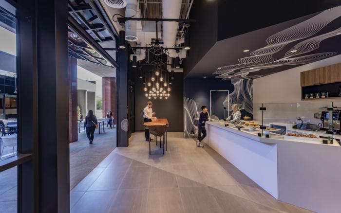 Interior work included new lobbies with green walls and various seating and meeting areas to enhance the experience of the building’s tenants. A café in Tower 2, provides convenient grab-and-go food options with access to the outdoor spaces via a large overhead door. Adjacent to the lobby and café, a building amenity center features a conference/training center, collaborative lounge, work areas and a gaming area.