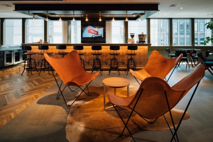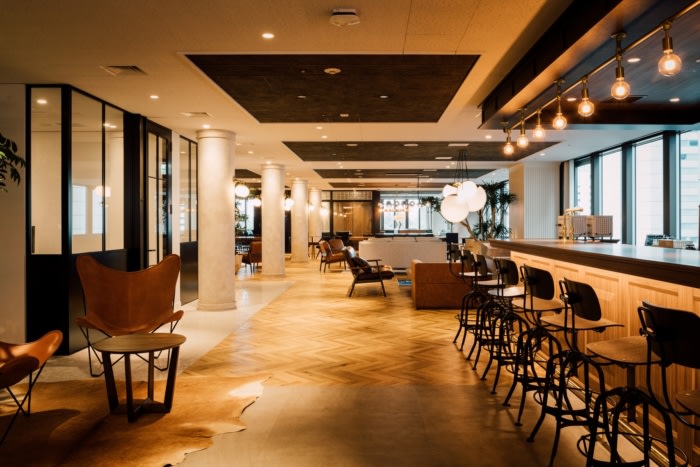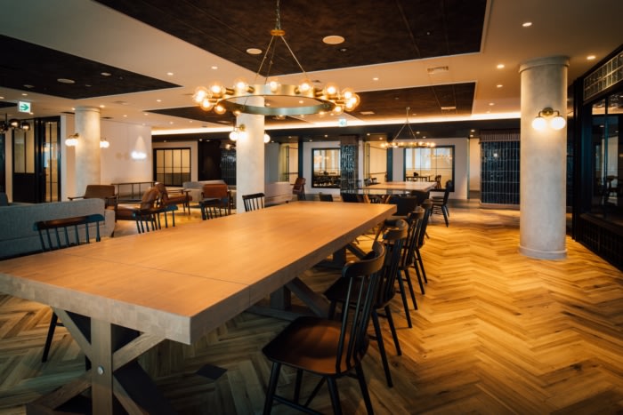 The design of this office is centered on the concept of NEO VINTAGE MIX; it meshes the retro elements of the Aoyama Building with the cutting-edge vibe of this dynamic tech company, to embody a vintage style with a modern twist.