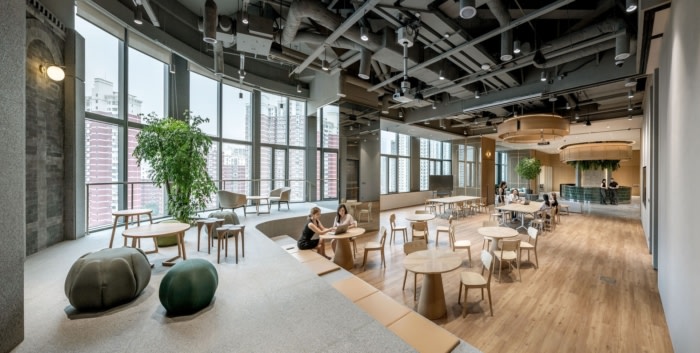 The overall layout of WORKX SOCIAL is inspired by the landmarks of Shanghai’s Hongkou District, strengthening the connection between the space and the culture around it.Biophilic, urban and soft digital elements are three pillars balancing business, culture, and nature in the space. These three elements are placed strategically throughout, encouraging exploration, exercise and wayfinding.