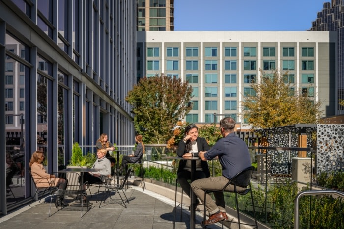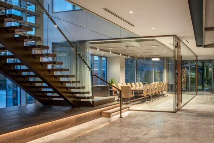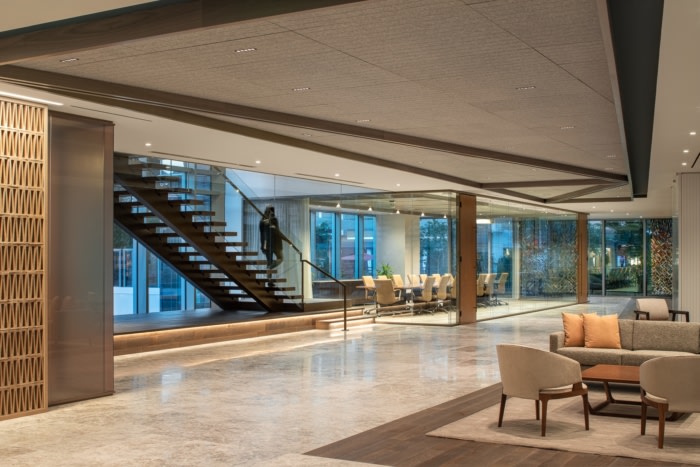 ASD|SKY assisted Smith, Gambrell & Russell, LLP, a distinguished firm that has been practicing law since 1893, in relocating to a first-generation space in a new Midtown building. Their suite features a two-story monumental stair that connects their reception, conferencing, and entertaining spaces to a large dining room opening to the sky plaza. All offices were design to be one size, allowing for unparalleled flexibility. The space boasts 10’ high ceilings and glass front offices for a spacious, light-filled environment. Collaboration spaces are located on each practice floor for convenient meetings and focused quiet work.