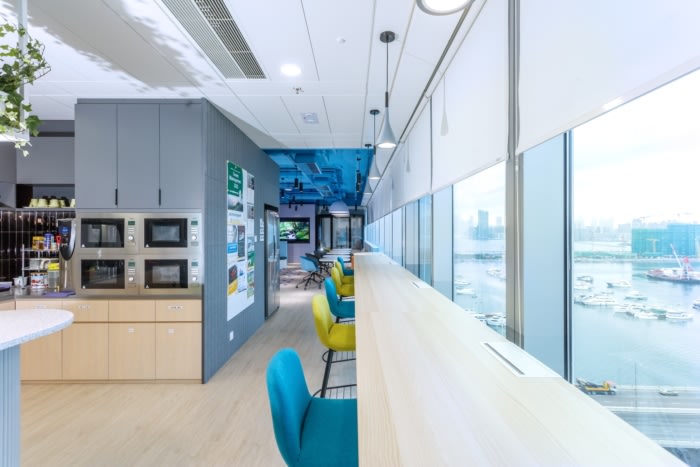 With this objective, the design team set out to create a flexible layout which allows flexibility on the activity-based work points. Since all employees, including senior management, do not have fixed desk, the design team created a design which comprised of different kinds of flexible workspace, like hot desk, phone booth, meeting pod, focus seat, work cafe as well as high bench. Hence, the new design offered more spaces for group discussions and activity-based activities. It also leveraged the great sea view that the employees all enjoy very much by locating the work cafe and working bench near it. It’s grateful that the recognition for “Chillax” and “New Working Style” are well received from stakeholders.