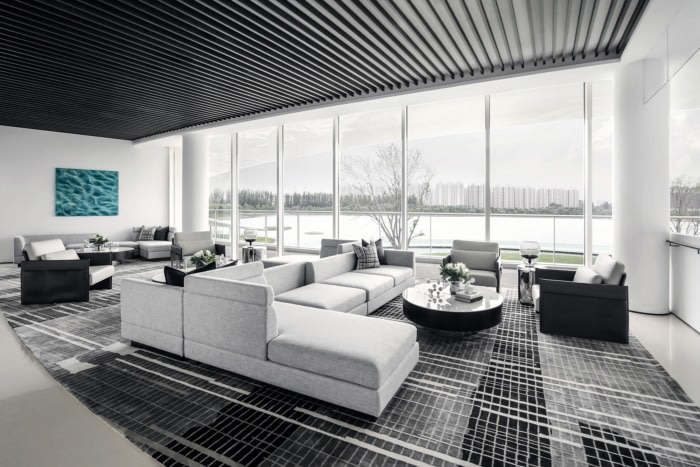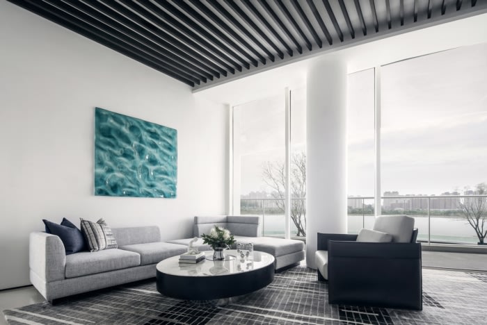 The sales center is situated within Gedi Lake Wetland Park. Both the architecture and interior show integration with the surroundings, as well as the perfect combination between natural landscape and functionality, the solid and void. The interior design not only embodies local cultural features, but also pays tribute to nature.