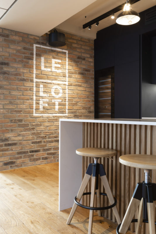 The loft and business center for total immersion at Synchrone : The 180 sqm industrial-style loft consists of a reception and a cozy relaxation area incorporating a bistro kitchen. “Eastern Oak” parquet, innovative “Touch Fenix” materials as well as designer lamps “Tom Dixon” or “Artemide” bring a warm and vintage atmosphere to the whole. The refined business center allows you to continue immersion and discussions in an intimate and cozy setting.